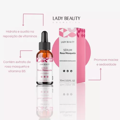 O sérum de rosa mosqueta da Lady Beauty é um produto formulado para hidratar, nutrir e regenerar a pele.